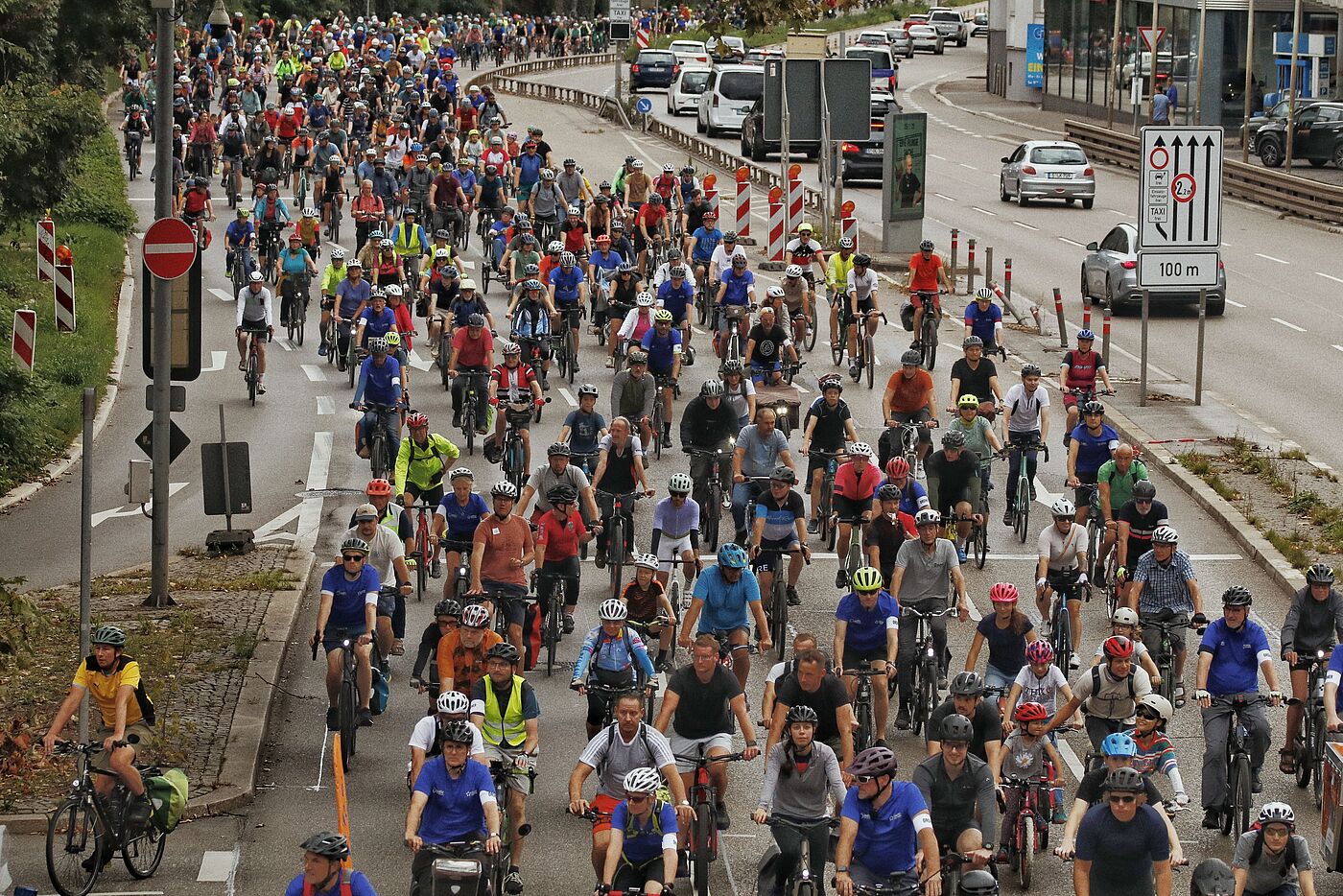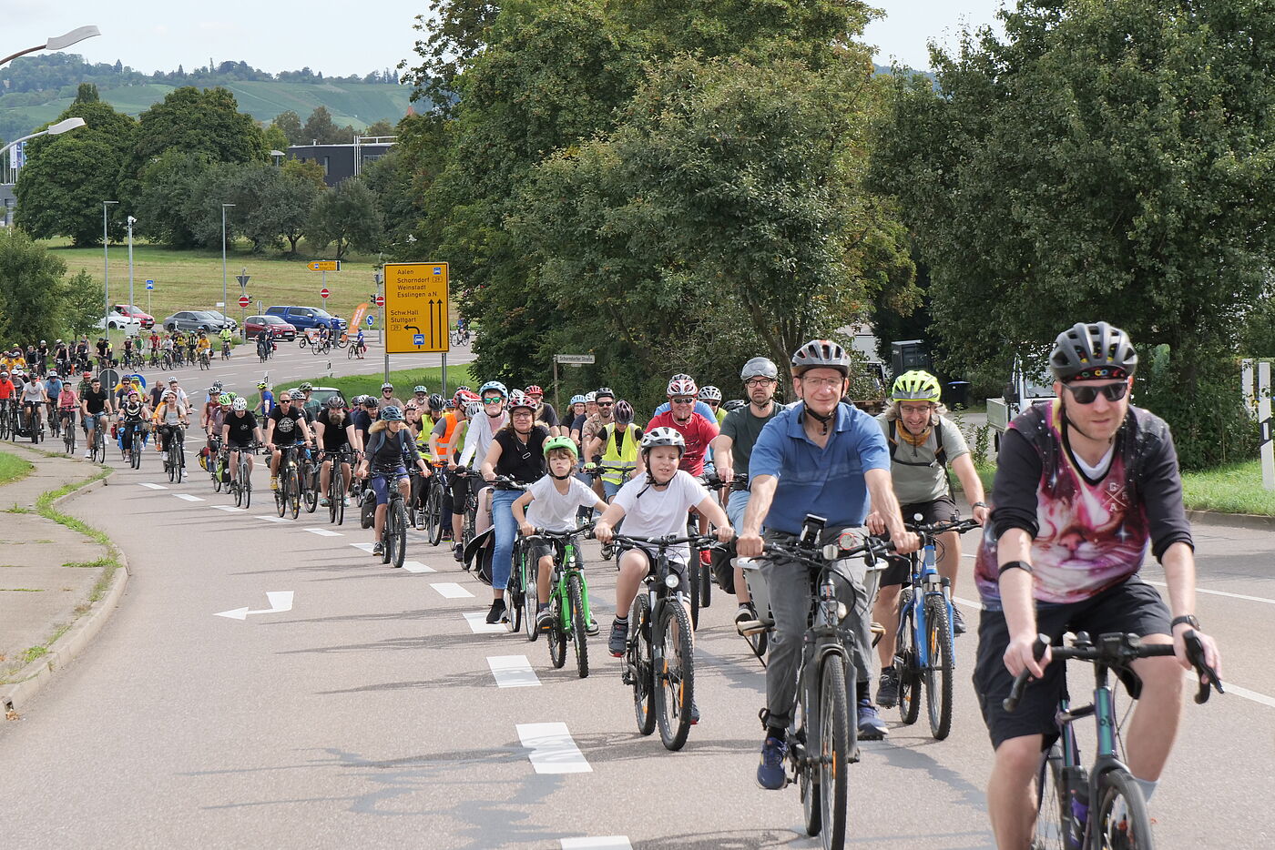 Trotz schlechter Wetterprognosen demonstrierten 5.400 begeisterte Radfahrende aus ganz Baden-Württemberg auf autofreien Bundesstraßen in der Region Stuttgart. Auch Politiker*innen wie Cem Özdemir oder Verkehrsminister Winfried Hermann radelten mit.